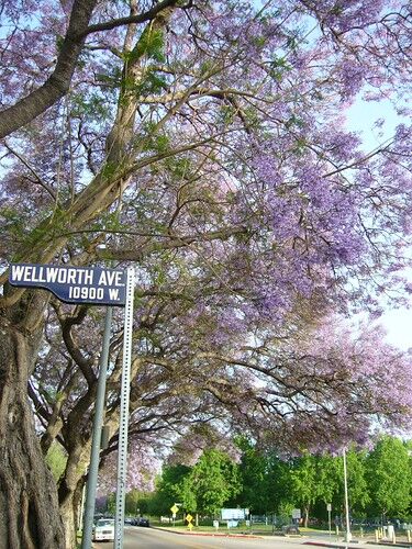 最近この街が紫の花を咲かせる木で一杯なので、写真を撮ってみた。何と言う名前なのか知りたい。どうやって調べればよいのだろう。